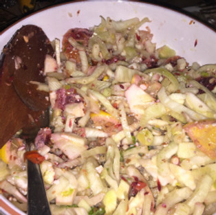 For our secondo Chef Barzini prepared polpette in agrodolce, meatballs with Sicilian raisins, capers and almonds and Tuscan pinenuts in a sweet and savory tomato sauce, and insalata di finocchi e arance, fennel and orange salad with anchovies from the Amalfi coast and Sicilian almonds. These dishes were great combinations separately and together.